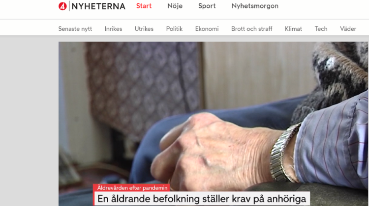 TV4 Nyheterna fortæller i dag, at andelen af ​​ældre i Sverige vokser med hastige skridt. Allerede om seks år forventes de, der er 80 år eller ældre, at være vokset fra nutidens cirka 580.000 til 800.000 mennesker. En udvikling, der bekymrer ældreforsker Ingmar Skoog, der efterlyser politisk handling.